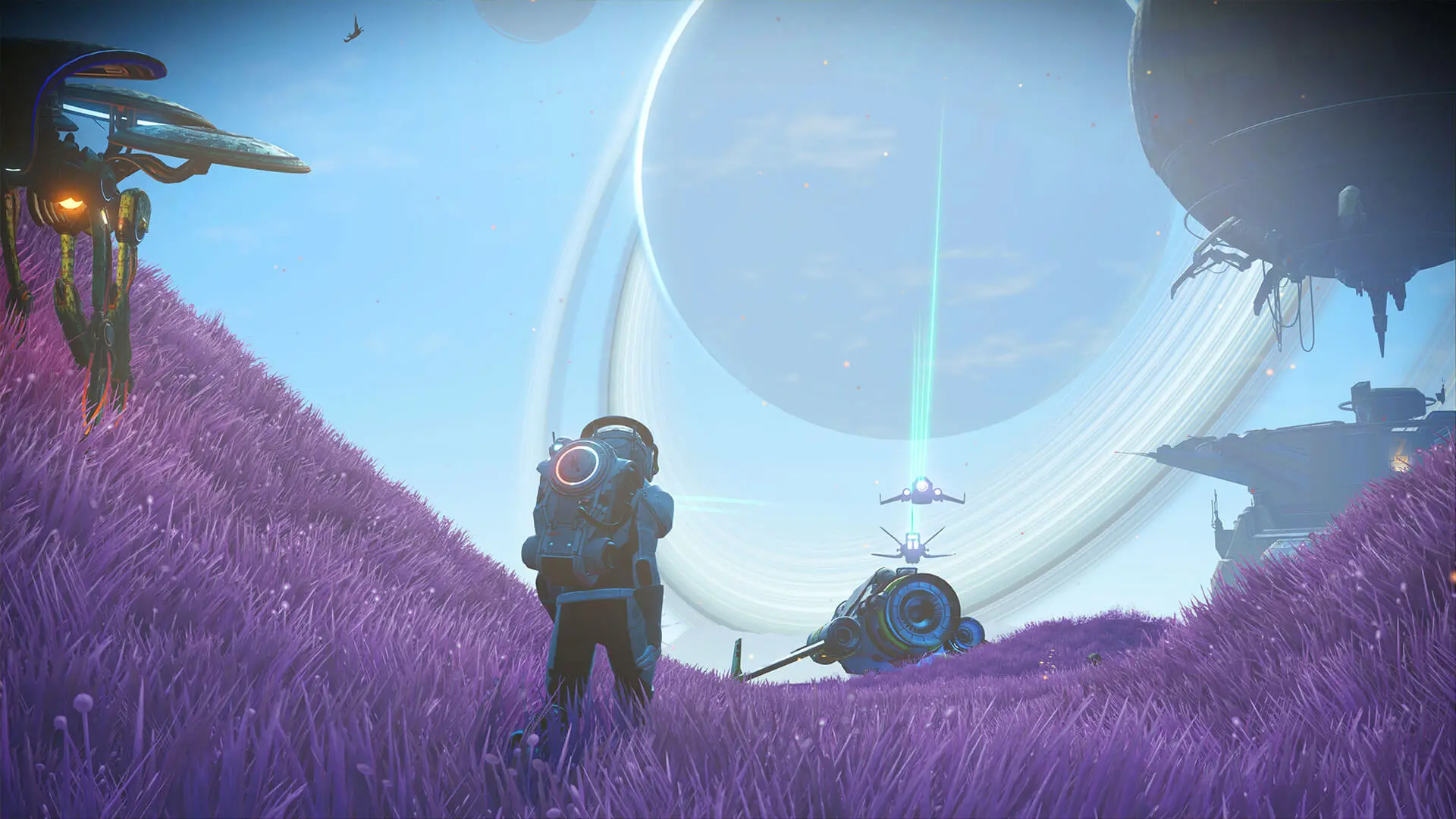 An exclusive Exosuit Appearance Override. A titanium flightpack, assembled from technology stolen from the Sentinel horde. Its engines are precooled with a constant flow of pugneum and nitrogen, ensuring fuel-efficient and deadly silent operation. Warning: do not unseal pugneum containment chamber without protective gear. Transform the appearance of your Exosuit at an Appearance Modifier.